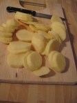 Meanwhile slice the tatties so you have a variety of large chunks and thin slices.