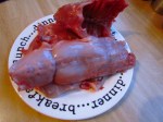 It took me ages to remember how to joint a rabbit but once you figure it out it’s pretty easy. You should put every bit into the roasting tin, even the bits you won’t eat like the ribs. It’s all extra flavour! I threw in the livers as well but they weren’t going to waste. Although a bit overcooked at the end of the roasting they w still a tasty wee bite.